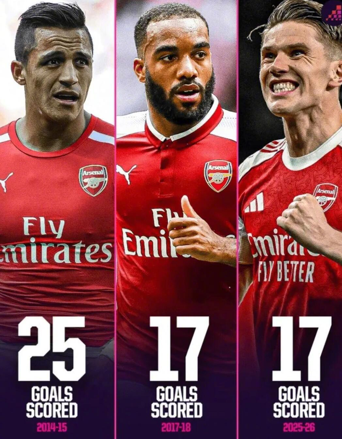 根据Opta Analyst的统计,哲凯赖什本赛季在各项赛事已经为阿森纳打进了17个进球。